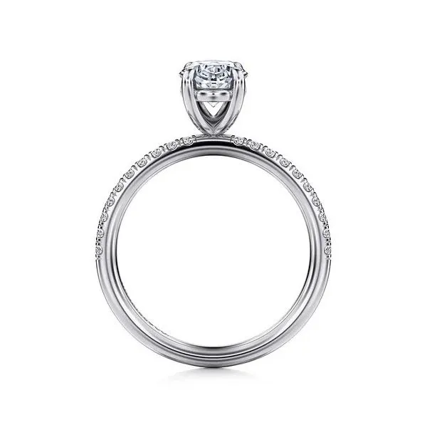 (903) 454-3802Twain - 14K White Gold Oval Plain Head and 1 7mm Shank 1 2 way around pave Shank *Setting only, center stone not included