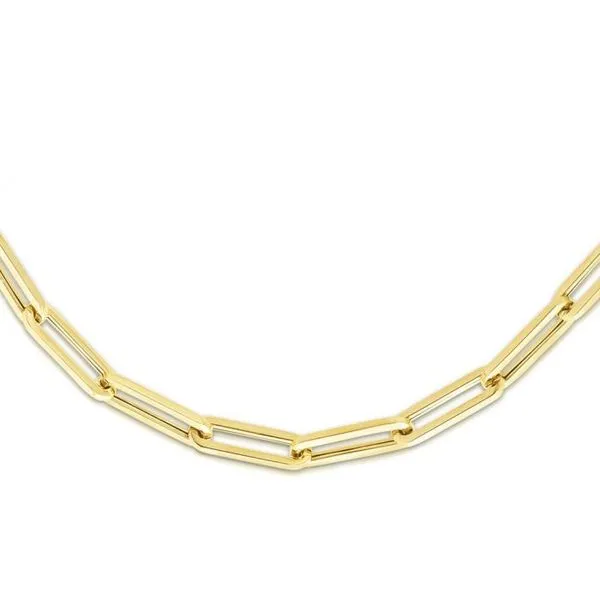 (903) 454-380214K Yellow Gold 4.2mm Paperclip Chain with Lobster Lock. Link measures 13.6mm.