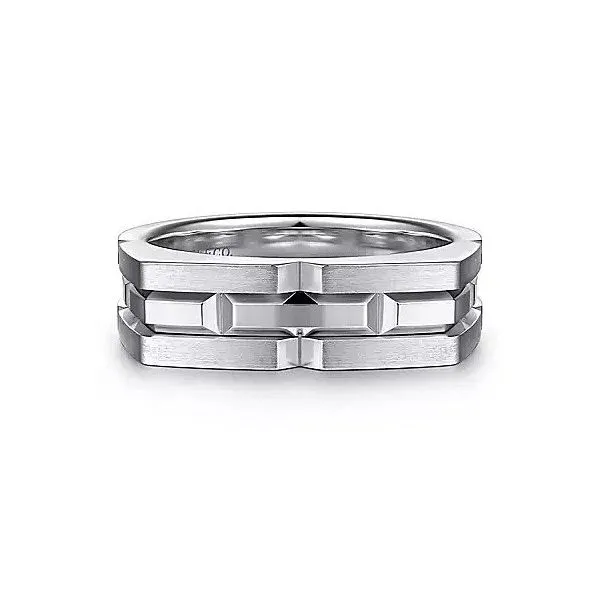 (903) 454-3802925 Sterling Silver Geometric Mens Ring in Satin Finish
