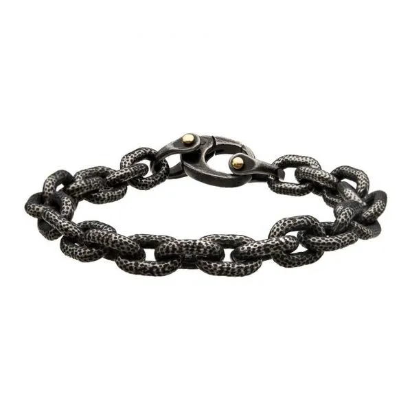 (903) 454-3802Men's Stainless Steel Antiqued Gun Metal Curb Link Chain Bracelet. 8 1/4 inch long
