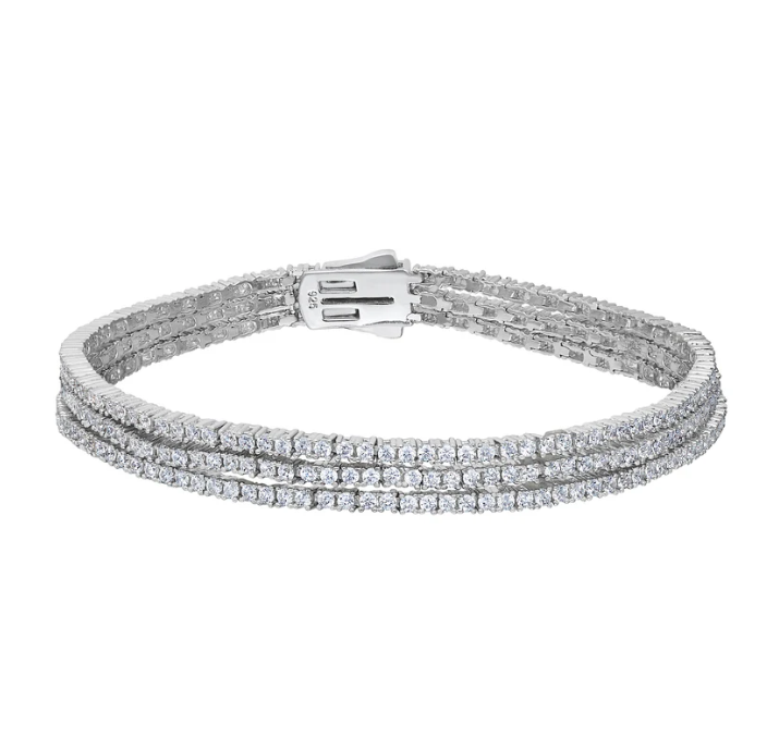 (903) 454-3802925 Silver Three Row Simulated Diamond Tennis Bracelet