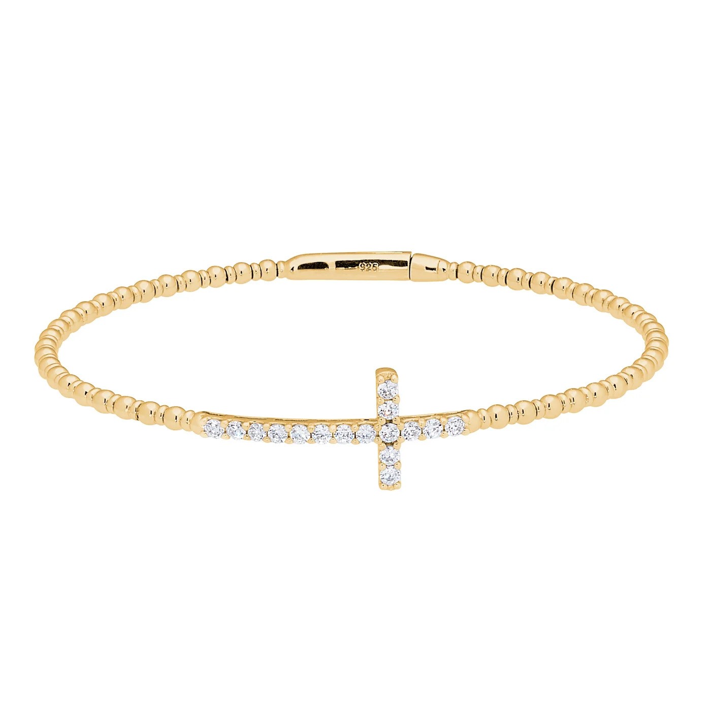 (903) 454-3802Gold Vermeil Sterling Silver Cross Flexible Bracelet with Simulated Diamonds