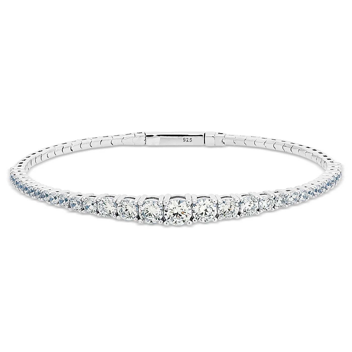 (903) 454-3802Platinum Finish Sterling Silver Single Row Flexible Bracelet with Large Graduated Simulated Diamonds