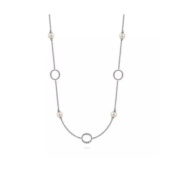 (903) 454-3802925 Sterling Silver Pearl and Open Circle Station Necklace