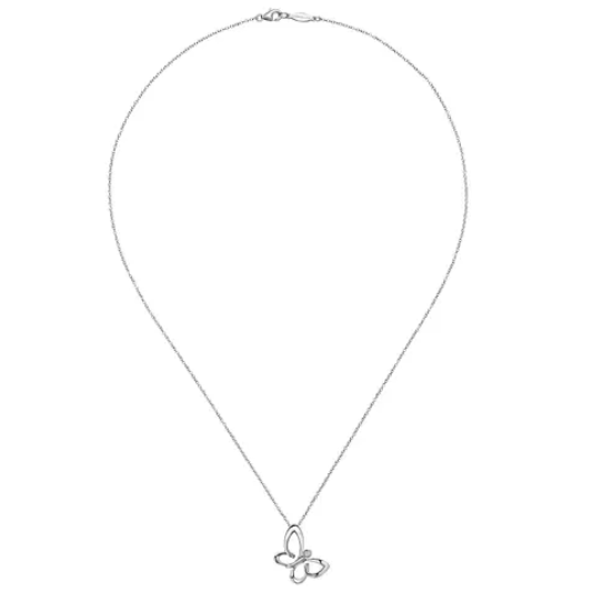 (903) 454-3802925 Sterling Silver White Sapphire Sideways Butterfly Pendant Necklace